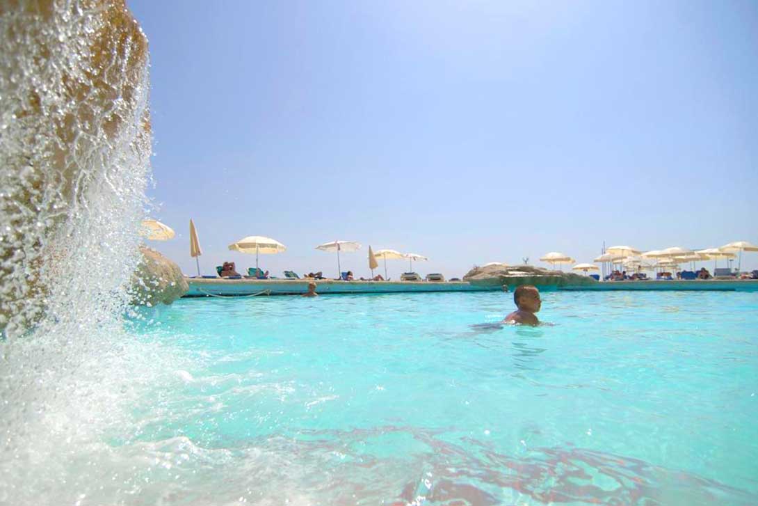 You can hear the soft lapping of waves from the large swimming pool on Preluna’s private beach (open May to October). Surrounded by dozens of sunbeds, the pool also has a special children’s section and a small bar. The indoor pool is quiet and relaxing.
